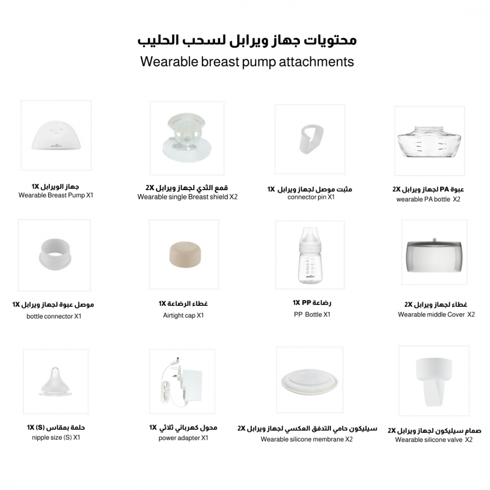 - تصميم يسمح لك بضخ الحليب بشكل مريح وسهل داخل صدريتك، في أي وقت وأيّ مكان وبدون استخدام اليدين