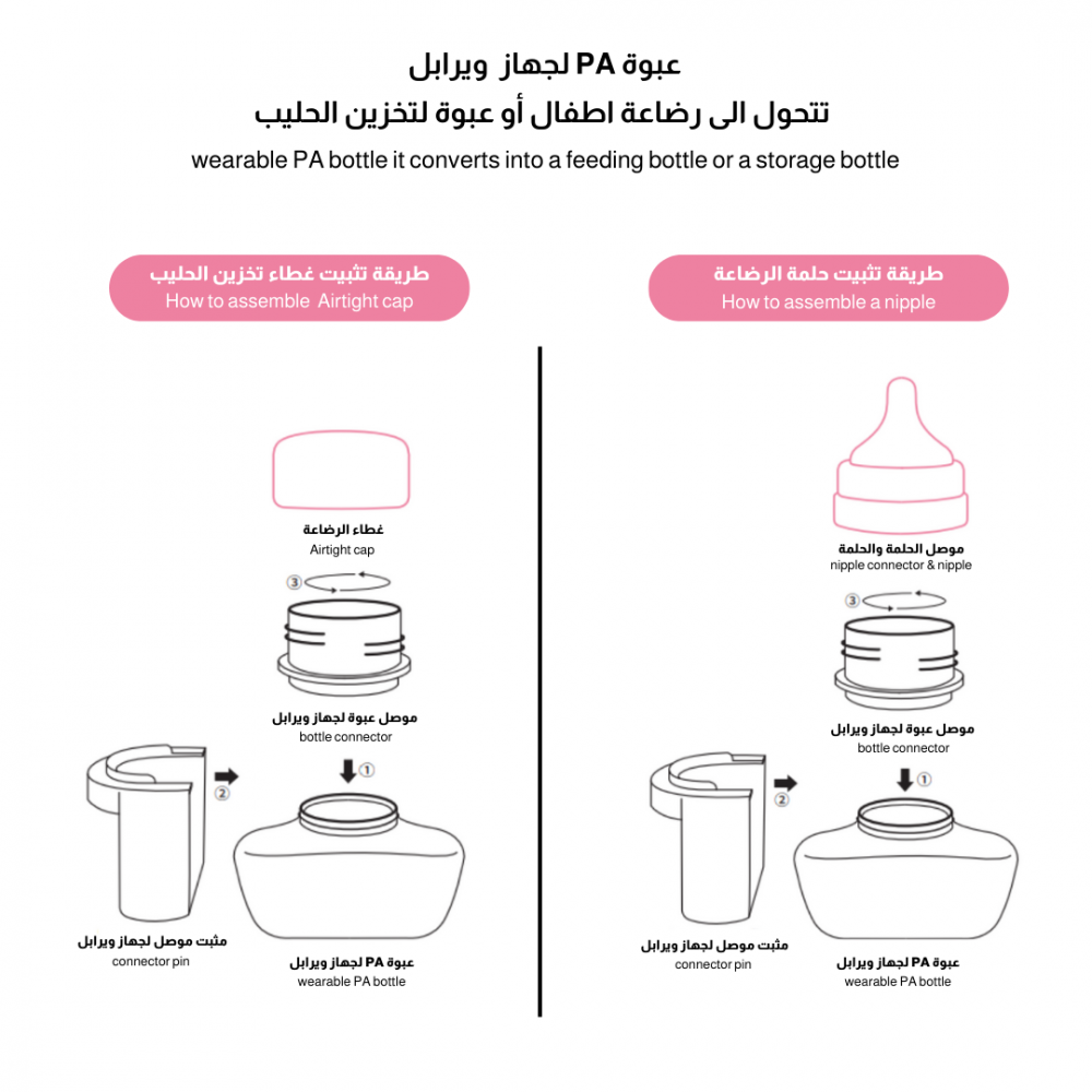 - تخزين الحليب في رضاعة الطفل مباشرة من خلال زجاجة الأطفال الموجودة في جهاز سحب الحليب